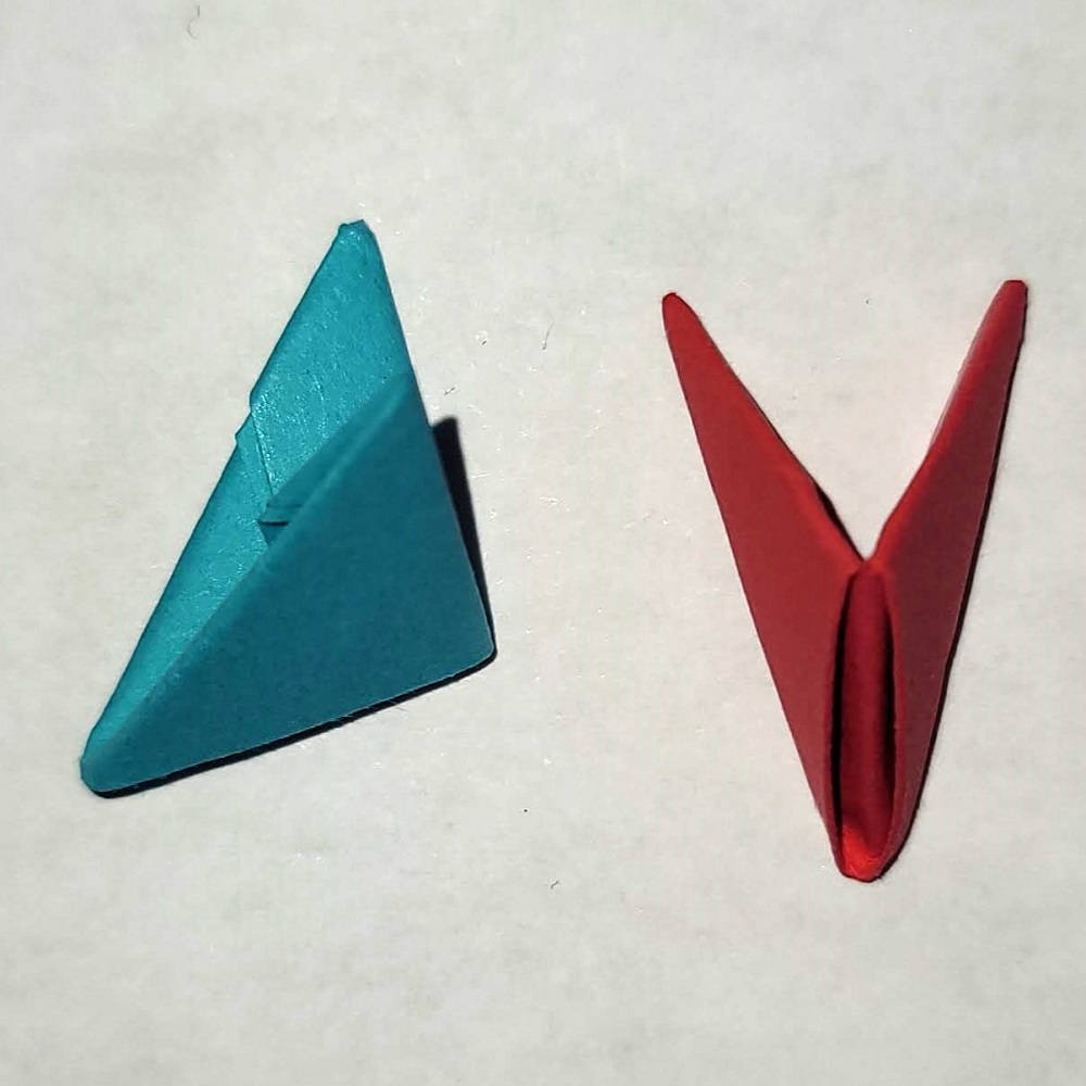 The triangular units can be assembled in a wide variety of ways. These techniques allow for an enormous variety of sculpture deisgns.